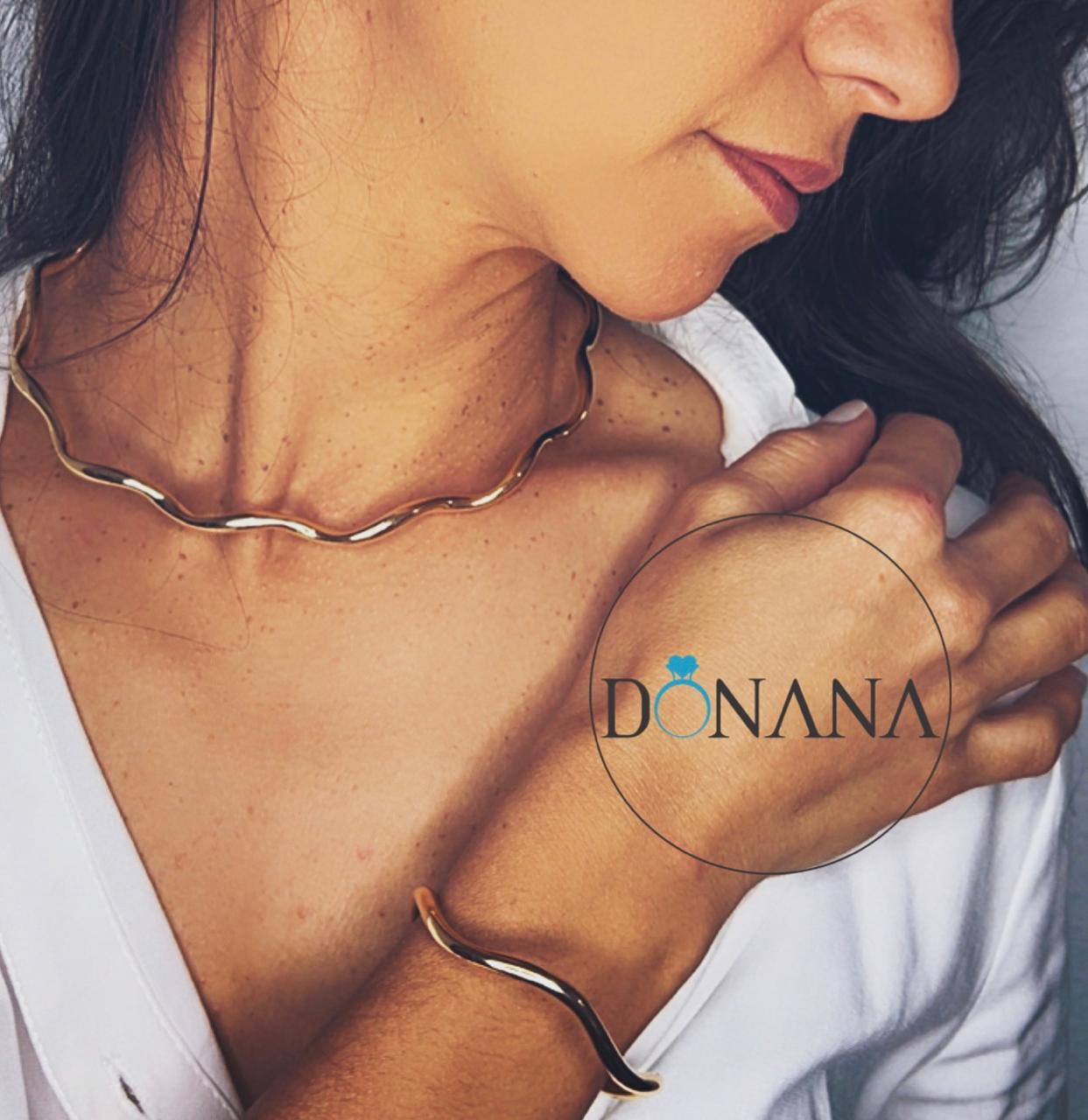 Aro e Bracelete Ondulados Ouro 18 k