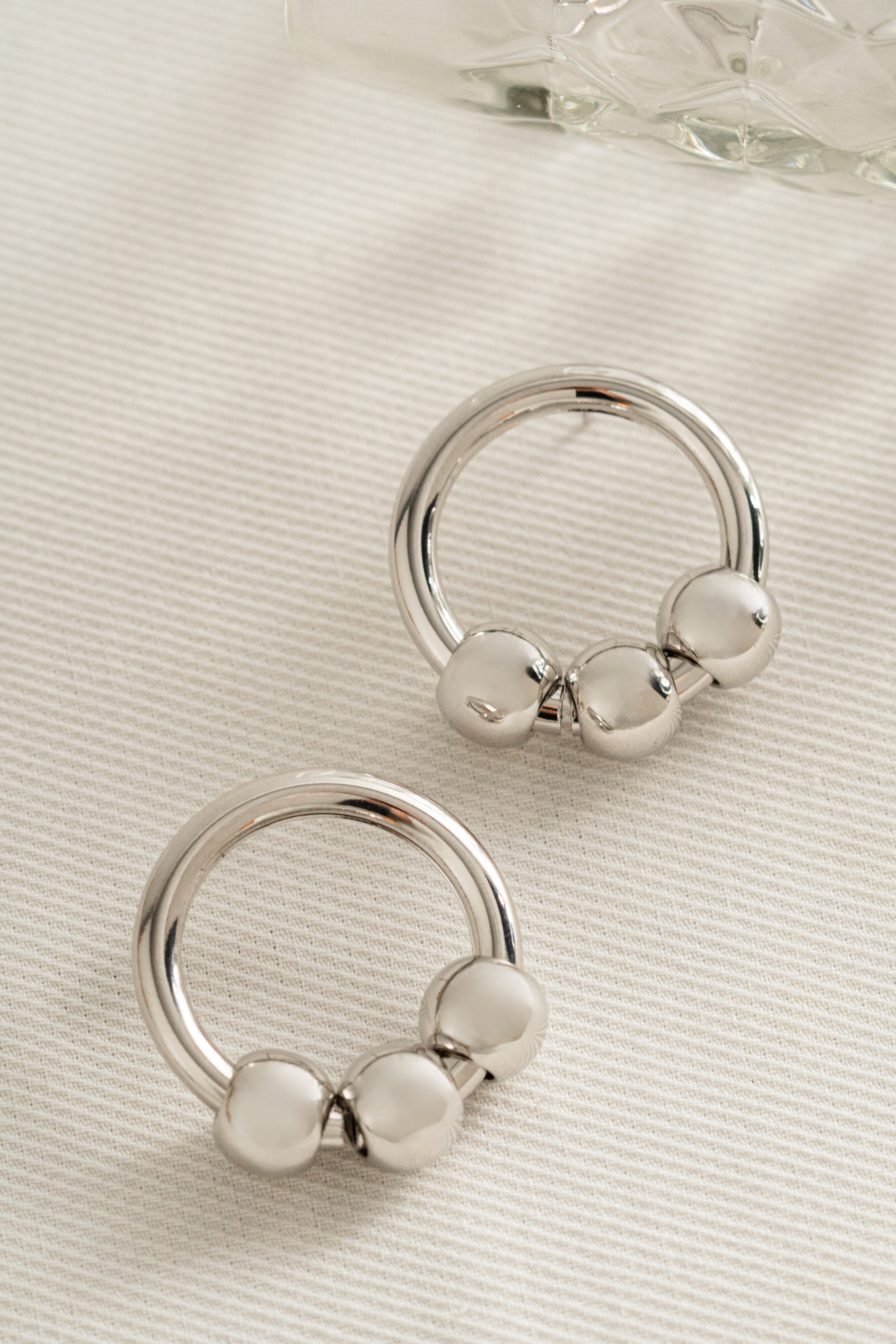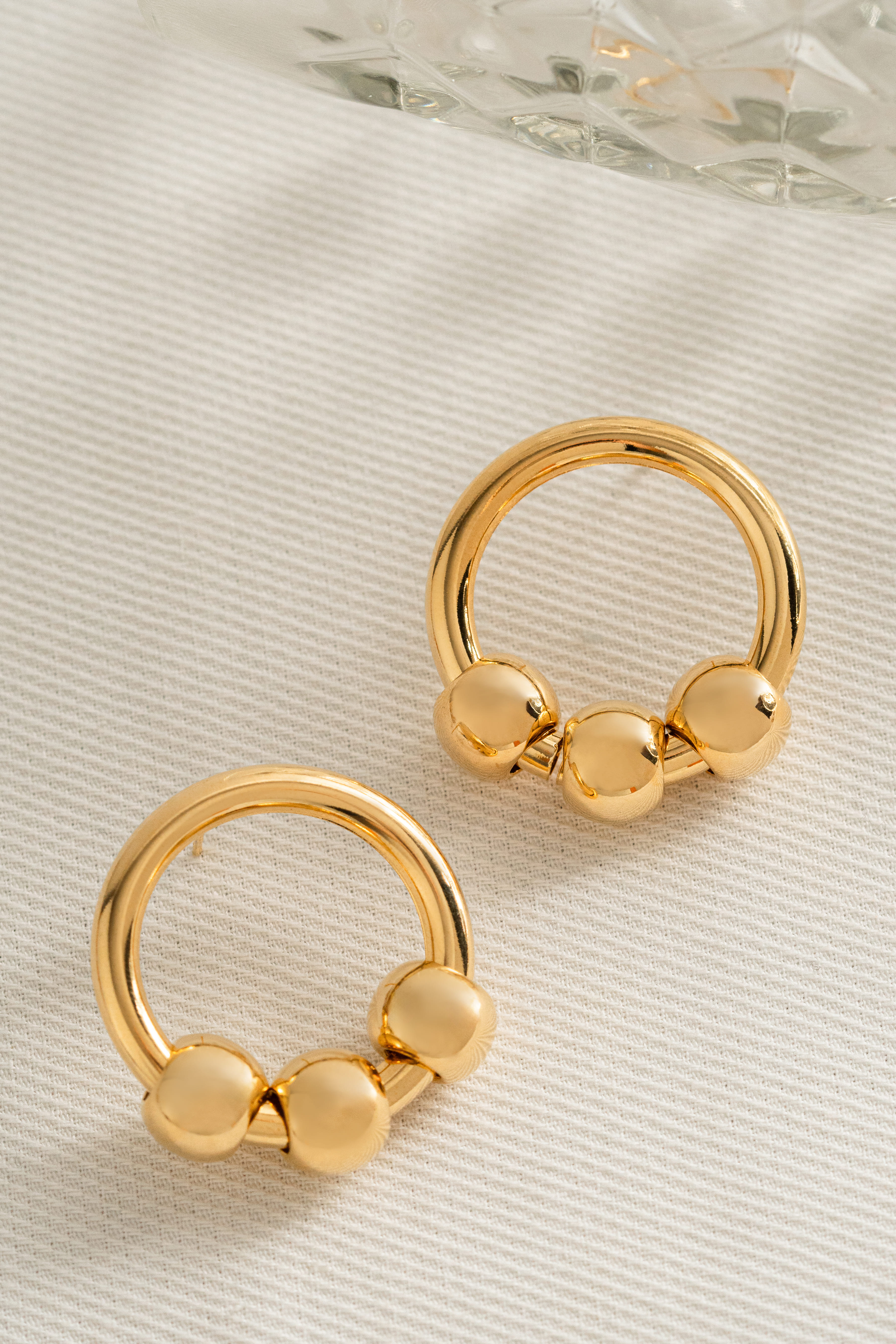 Brinco Círculo com Esferas no Ouro 18k e Rodio