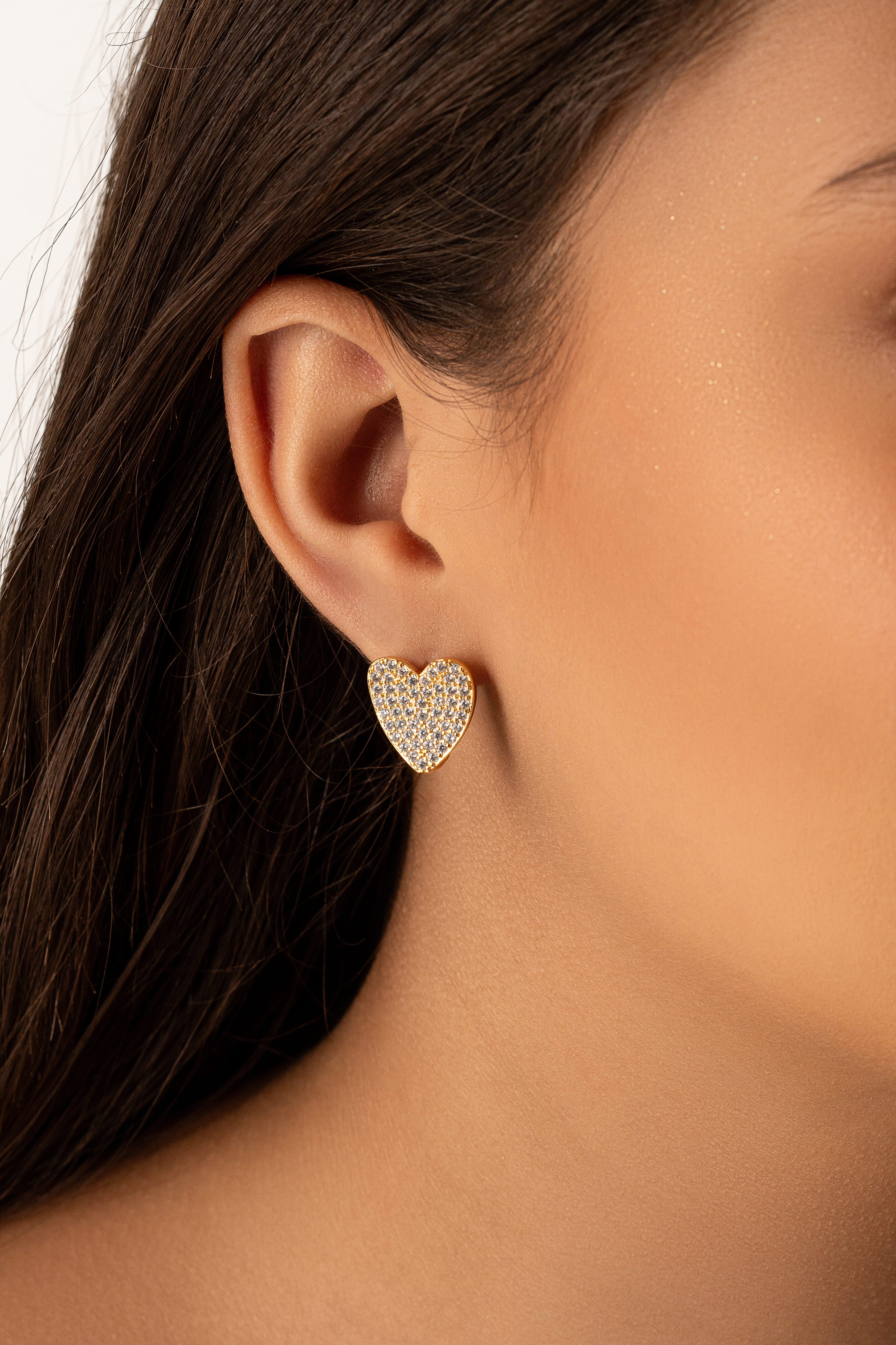 Brinco coração cravejado com zircônias no ouro 18k