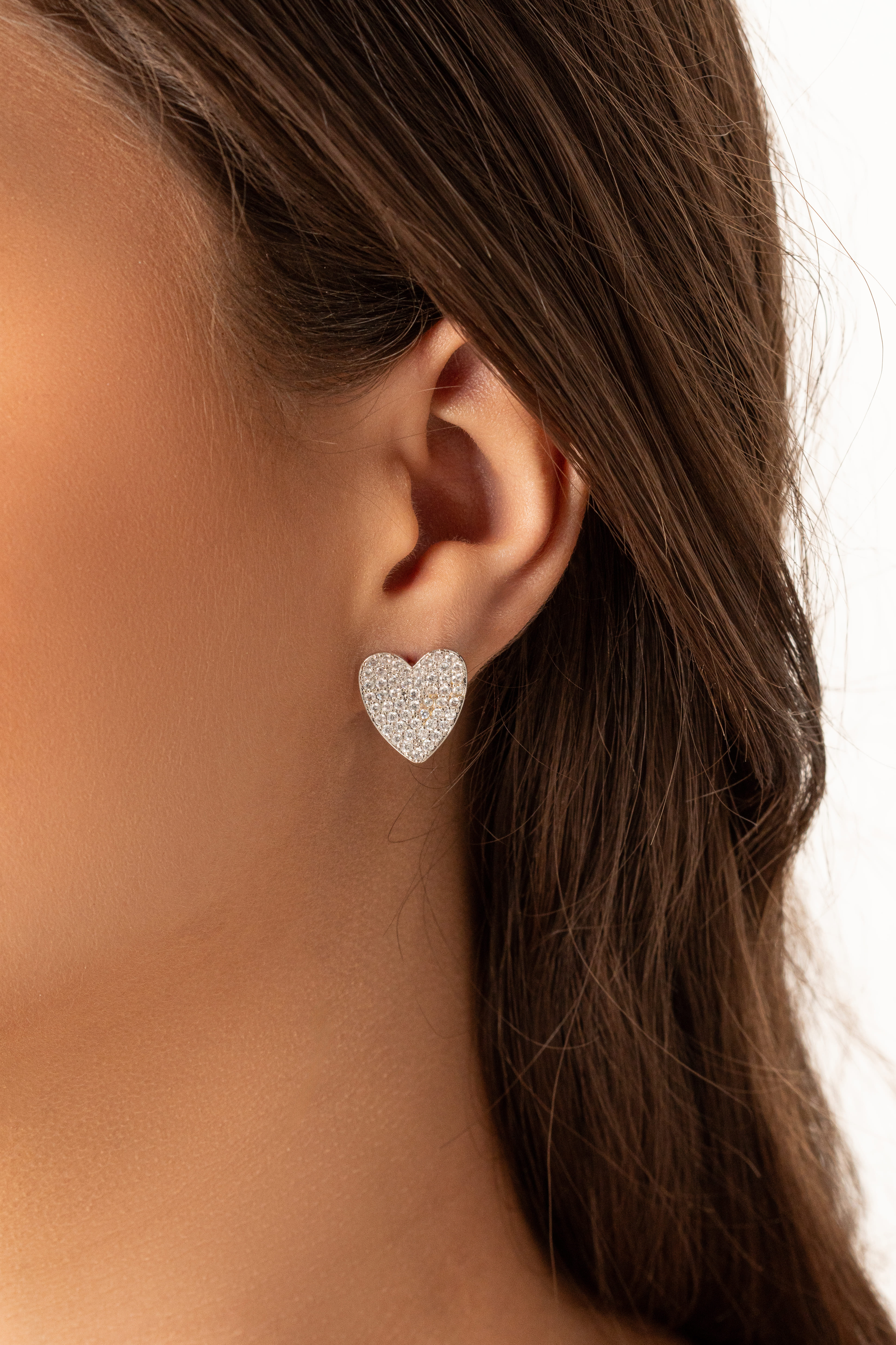 Brinco coração cravejado com zircônias no ródio