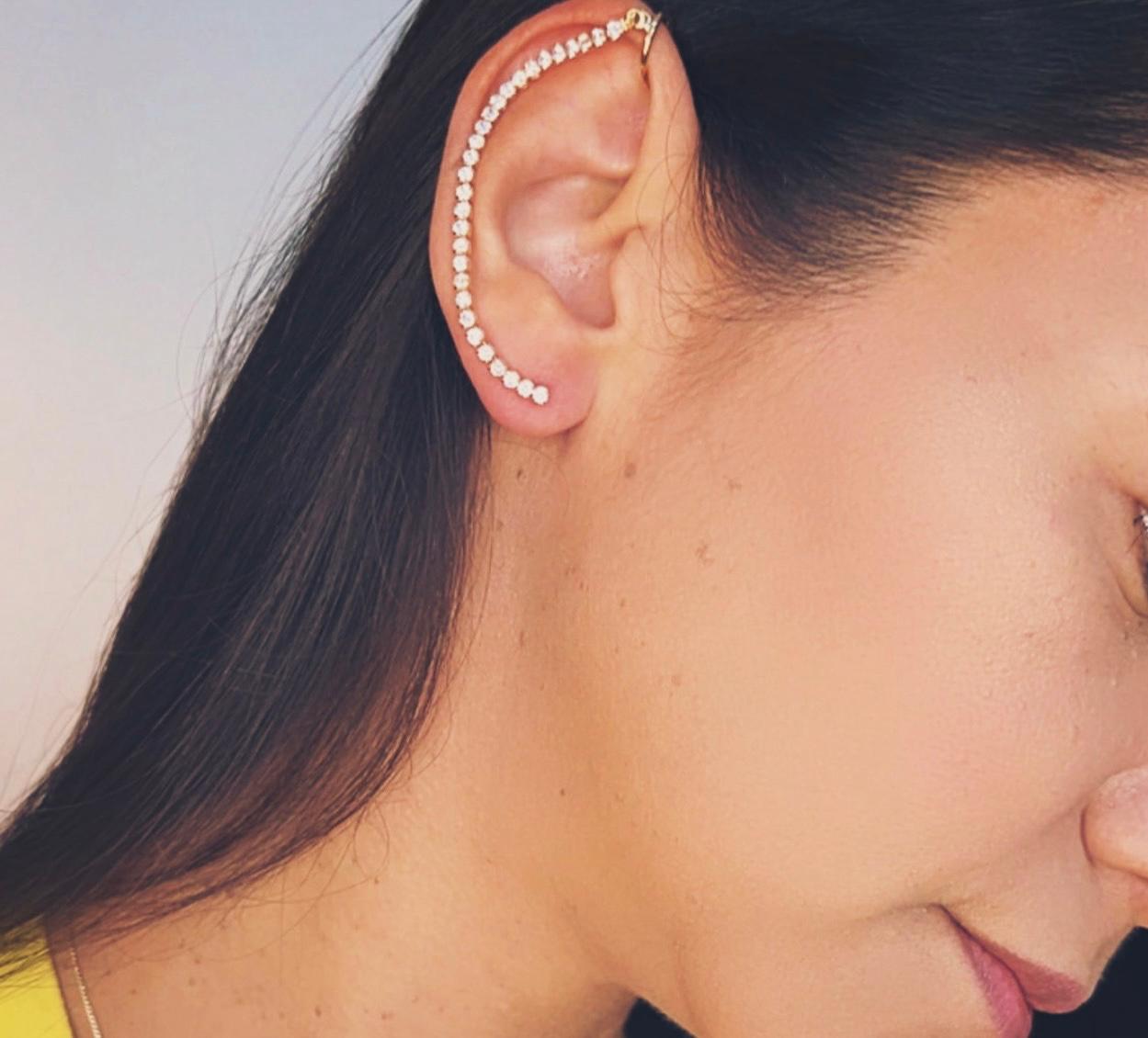 Brinco riviera ródio branco e piercing com encaixe na orelha